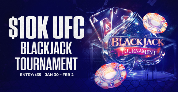 THIS EVENT IS A KNOCKOUT! Until February 2, ground and pound your way to a Blackjack payday in our $10K UFC Blackjack Tournament. Get in on the fun for $35 and battle for the top prize of $3K! Will you go the distance?