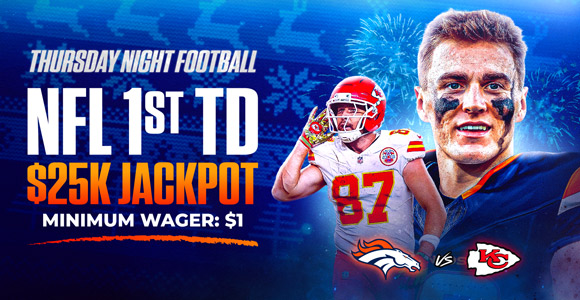 $25K 1st TD Jackpot • NFL Christmas Triple Header • NBA Bet & Get A Very Merry $25K Jackpot! You could win up to $25,000 on Christmas Day betting Broncos vs. Chiefs. All you have to do is place a 1st TD Scorer