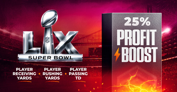 The biggest game of the year deserves a trio of epic boosts. Each prop (Player Receiving Yards, Player Rushing Yards, Player Passing Touchdowns) can be bet once, giving you three chances to win 25% more. Lock in all three before kickoff!
