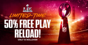 febrero 6, 2026 | Staff Writer | Casino | MyBookieEXCLUSIVE 50% FREE PLAY RELOAD UP TO $2,500! Promo Code: SBLXFP26 Betting the Big Game just got easier thanks to your exclusive 50% Free Play Reload Bonus with only a 1x rollover! Boost your Super Bowl bankroll and bet every second of Seahawks vs. Patriots with this epic offer. But you’d better hurry, because it […]