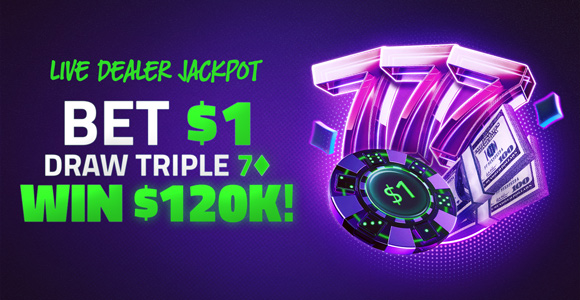 Take a seat at any Jackpot 777 table and add the $1 Jackpot side bet alongside your main wager. If you hit three sevens, you’ll win $100; three red sevens mean $1,000; and if Three Diamond 7s turn up, you’ll win the $120,000+ Jackpot!