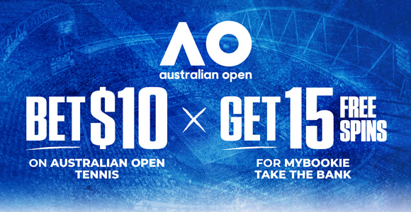 Bet $10 or more on any Australian Open match, and we’ll hook you up with 15 Free Spins for the slot game MyBookie Take the Bank. This limited-time offer expires on January 18 at 11:59 PM ET, so act now!