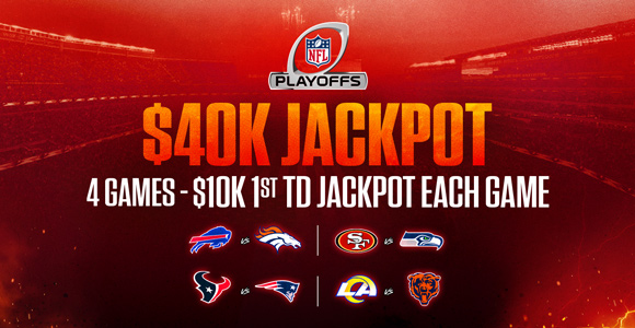Every Divisional Round matchup comes with its own 1st TD Scorer Jackpot – $10,000 on the line each game. Make your picks and chase big wins all weekend long!