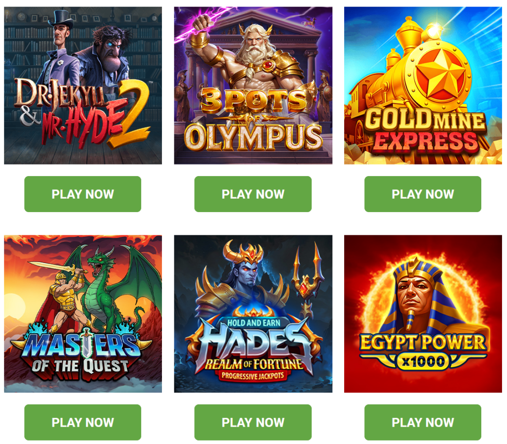 Our new games this week include Dr. Jekyll & Mr. Hyde 2, 3 Pots of Olympus, Gold Mine Express, Masters of the Quest, Hades: Realm of Fortune, and Egypt Power x1000!