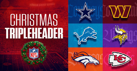 • Christmas Parlay: Cowboys (-7) + Lions (-6) + Broncos (-13). Bet $100, win $612!
