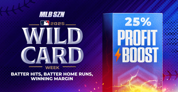 During the Wild Card round, score 25% more on three different props (Hits, HRs, and Winning Margin). Each prop can be bet once, which means you can earn 25% extra three separate times! It’s the playoffs – go big and bet all three today!