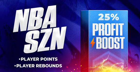 Dominate hardcourt action tonight with TWO 25% PROP BOOSTS! Each prop (Player Points, Player Rebounds) can be bet once, giving you two chances to win 25% more.