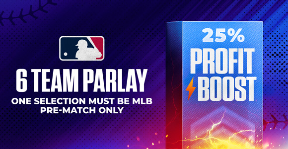 *1x USE ONLY. Boosts automatically added to your Bet Slip. Boosts have zero rollover. Cash wagers only. No Free Play. One leg must be an MLB game. 6-pick parlays only. Max win in Betslip.