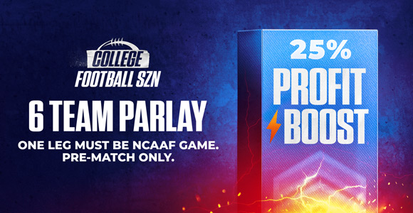 Profit Boost Tokens tilt lines in your favor, increasing your odds and maximizing your payouts. Build a 6-leg parlay with at least one College Football game in it and score 25% more if it hits! Want to learn more about Profit Boost Tokens?