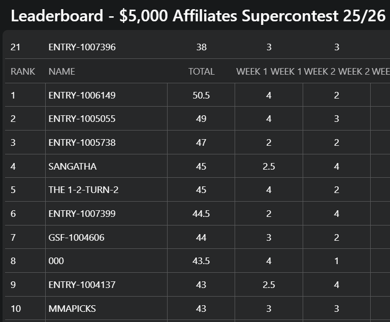 WebPartners Affiliate NFL SuperContest Final Leaderboard: